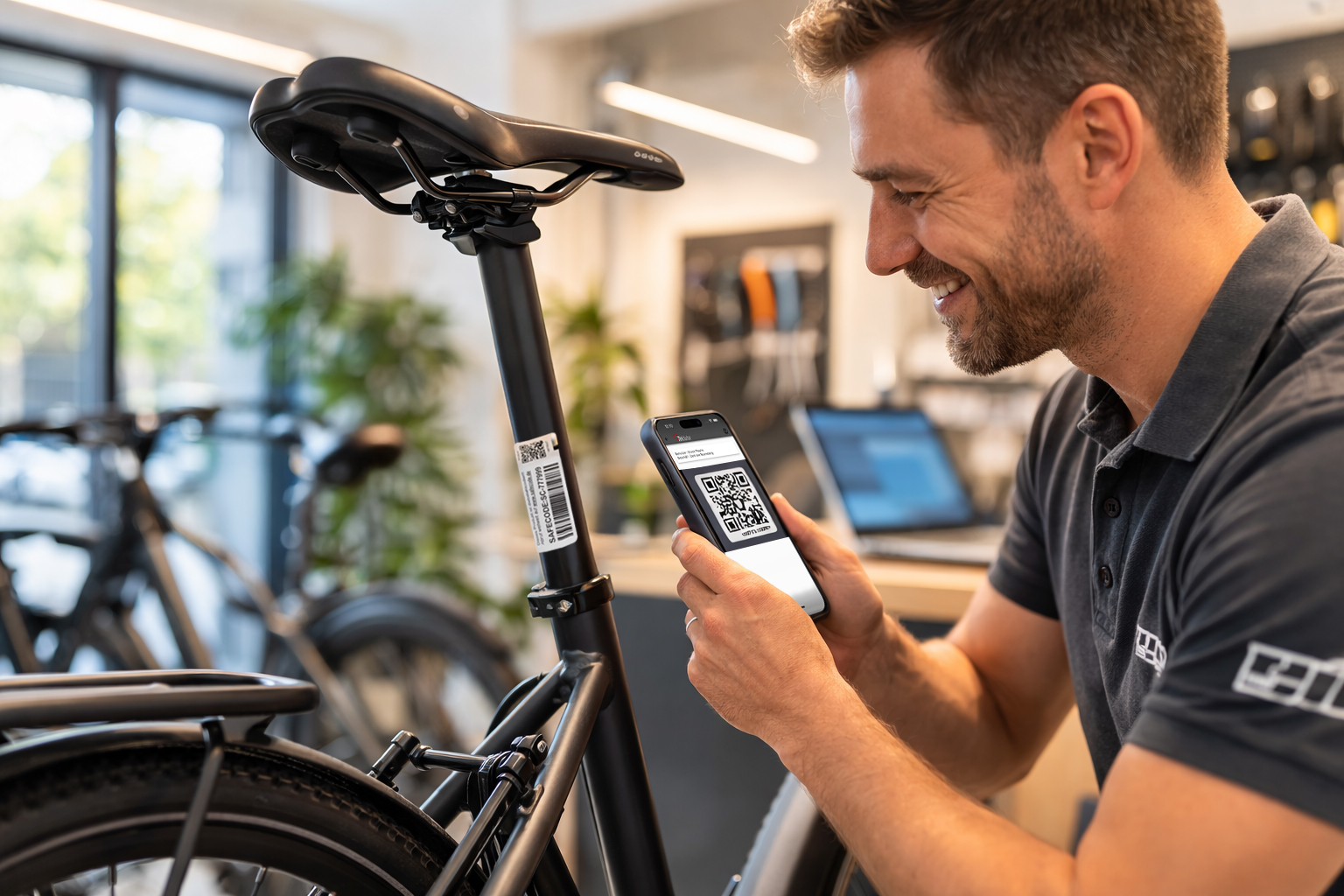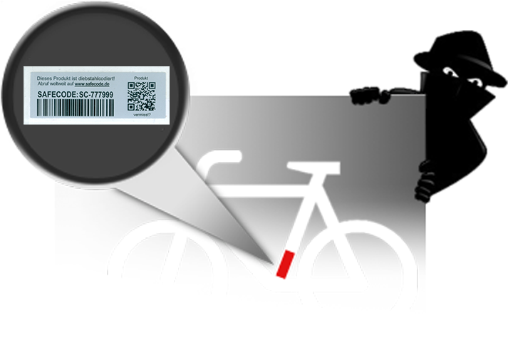 Mit SAFECODE wird jedes Fahrrad eindeutig identifizierbar. Der Code wird dauerhaft am Fahrrad angebracht. Nach Eingabe des SAFECODEs ist sofort und weltweit prüfbar, ob ein Fahrrad vermisst wird.